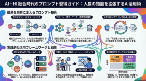 「この回答を改善するために何が足りないか?」とAIに自己評価させる手法を「メタプロンプティング」と呼びます。ここで重要なのは、人間の役割が「ゼロから作成する実行者」から、AIの出力を精査する**「校正者・レビュー者」**へと根本的にシフトしているという認識です。